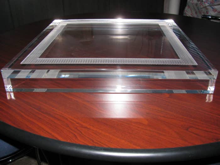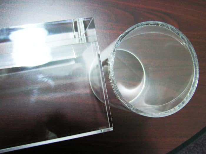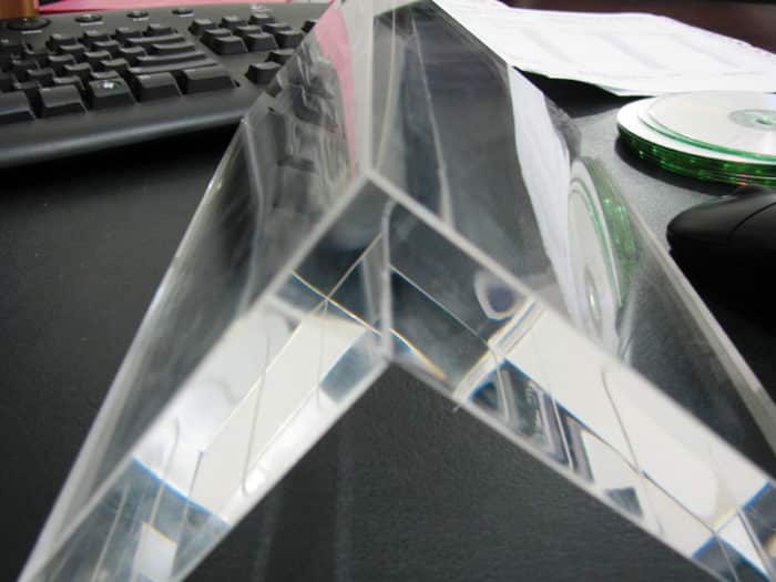 Bonding Services Bonding Services Using our advanced UV bonding technology, we ensure that each laser cut acrylic is bonded in a seamless and highly durable manner. All of the joints will be well-aligned as well as reinforced to ensure both aesthetic and structural quality. UV Bond Effect UV Joint UV Bond VS Normal Bond Tracless UV Bond