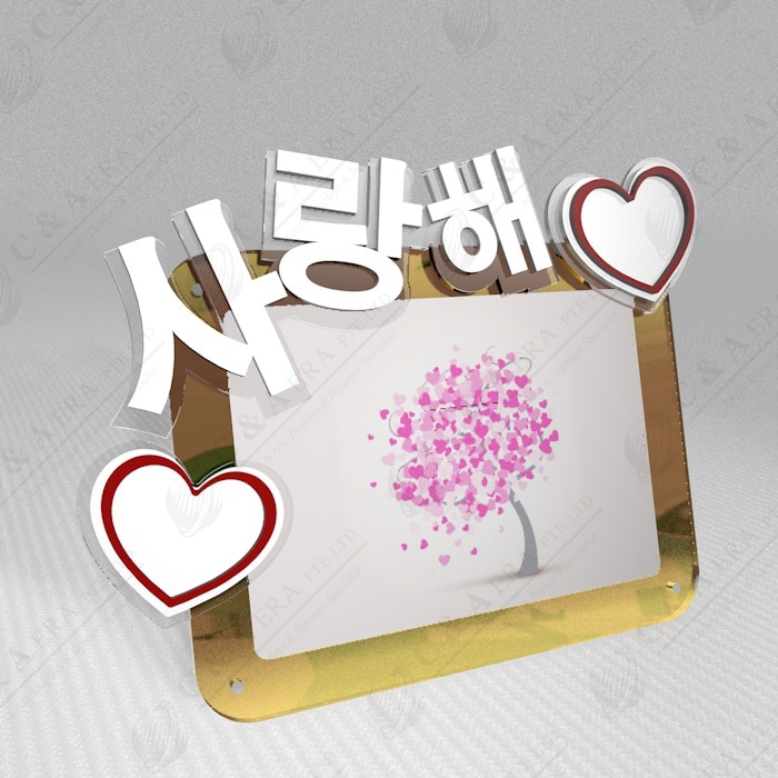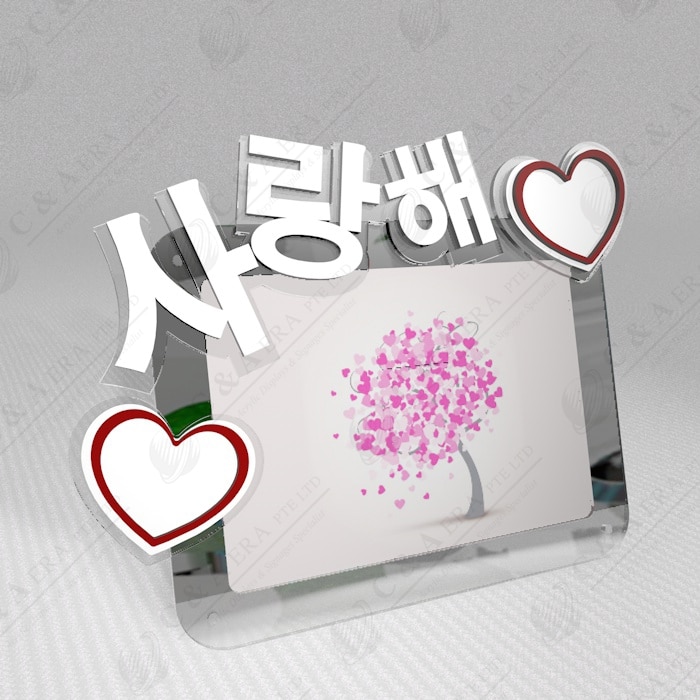 High quality acrylic Photo Frame with Korean words “사랑해”  meaning ‘I Love You’ in English.