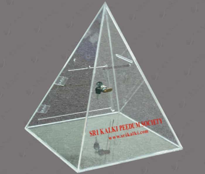 triangle-shaped donation box